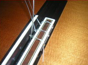 Notice the winding on rollers is in the direction of corresponding tuner knobs. (Bass strings wind to the bottom of the picture, Treble strings wind to the top.) This will allow the strings to travel from the fingerboard nut to the rollers without touching the headstock.