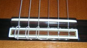View with full tension. This method of attaching the strings to the bridge not only looks good and holds the strings tighter, but also prevents the string ends from rattling on the top.