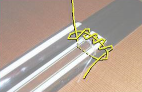 A rubbing compound is used to polish the frets with even, counted strokes in the direction as shown. Do not let the rubbing compound rest on a guitar finish. It is petroleum-based and if left unattended for an extended time will leave blemishes.