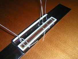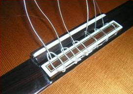 View with full tension. This method of attaching the strings to the bridge not only looks good and holds the strings tighter, but also prevents the string ends from rattling on the top.